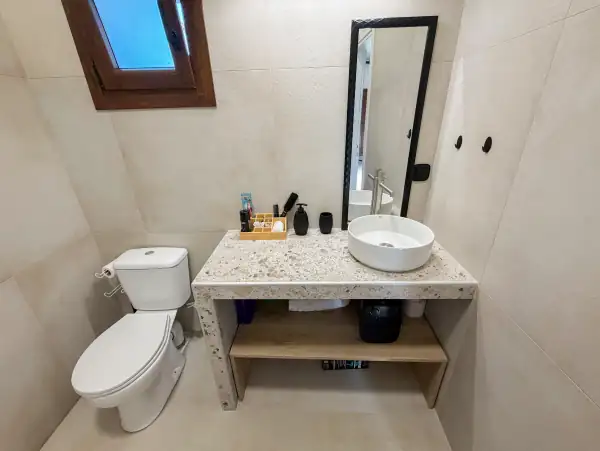 Συσκευές και είδη μπάνιου υπάρχουν στον χώρο.